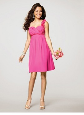 This dress can be purchased at David's Bridal for $158 and the color is Blush.