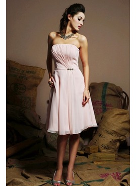 A-Line/Princess Strapless Knee-Length Chiffon Charmeuse Bridesmaid Dress with Ruffle
